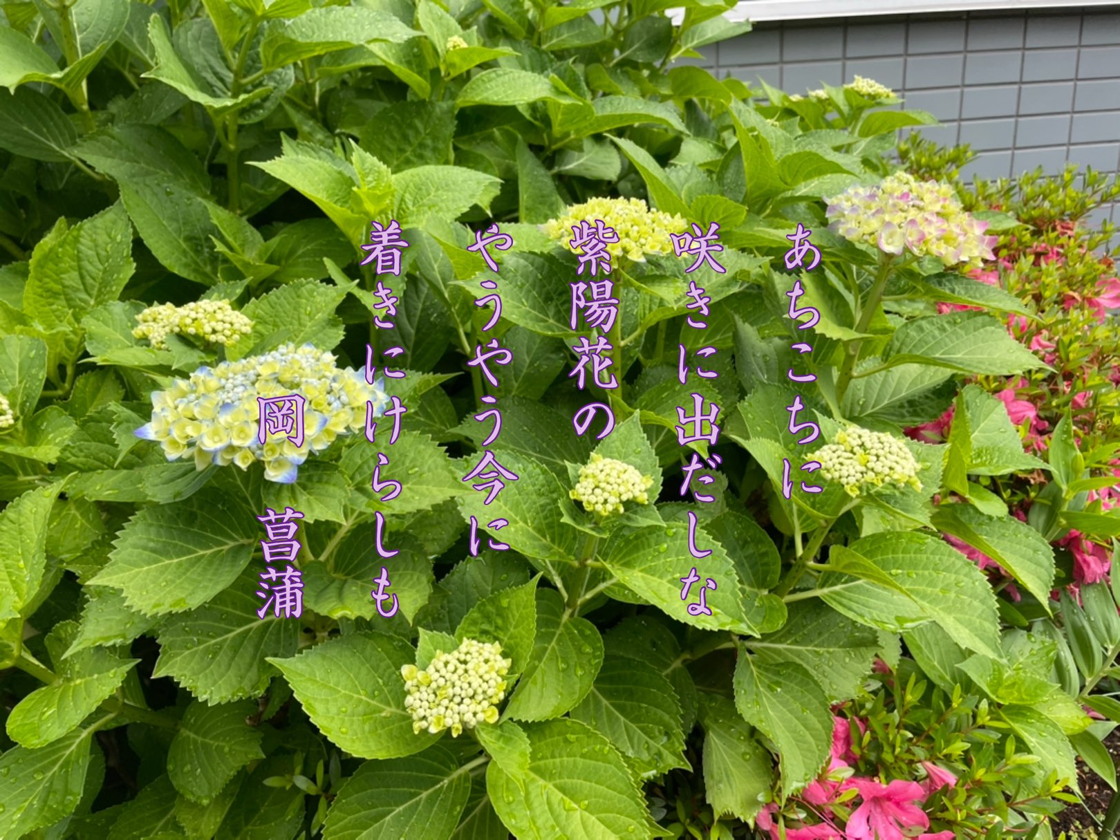 あちこちに咲きに出だしな紫陽花のやうやう今に着きにけらしも ![]() |